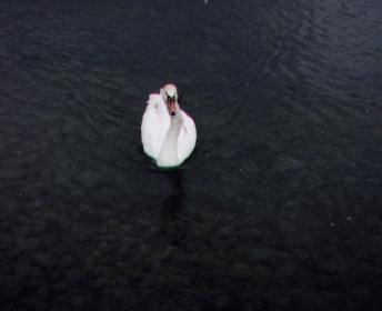 As I approached the lake edge from the north an elegant white swan glided towards me.