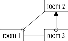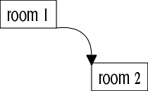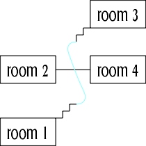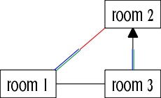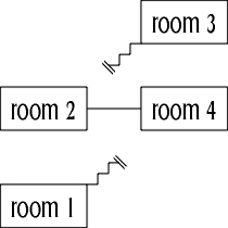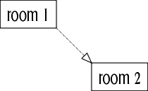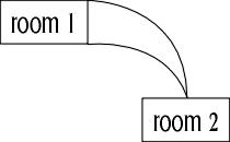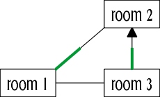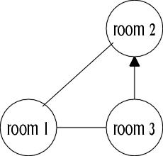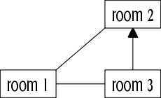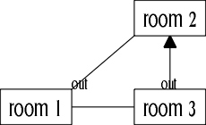 Although north from room 1 led to room 2, there was no connection between room 2 and room 1, so the north exit was unidirectional and had to be scrapped.
