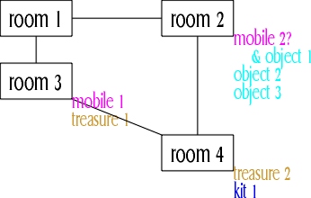 If you feel the game is thwarting your mapping efforts, you can take steps to remedy the situation. Rooms can be marked with pebbles, so you can tell whether you've been there before (unless someone moves them around for you...). Do not underestimate the fact that when you enter a room for the first time in a game you get its full description, but on subsequent occasions you get only its short description (unless you look). This is a great way to tell if you've been in a room before or not, at least when the rooms co-operate (like forests do, for example). If a mobile is being obstreperous, flee! Well hello, you were using a protected persona, what do you care if you lose some flee points? :-)